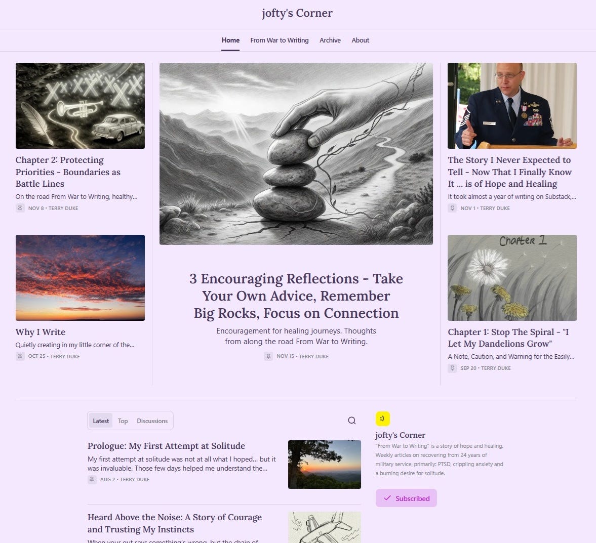 The road From War to Writing welcomes battle-buddies. If you find my story compelling, I invite you to subscribe and join the journey.