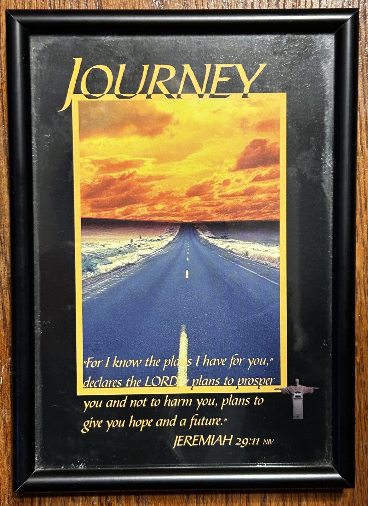 The quote on the plaque is from Jeramiah 29:11 and reads in part: “I know the plans I have for you… plans to prosper you and not to harm you, plans to give you hope and a future”